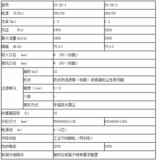 粉塵經(jīng)柔性吸管吸入內(nèi)置旋風除塵室**步除塵,再經(jīng)桶式濾芯第二部除塵,*后經(jīng)高壓風機排出。